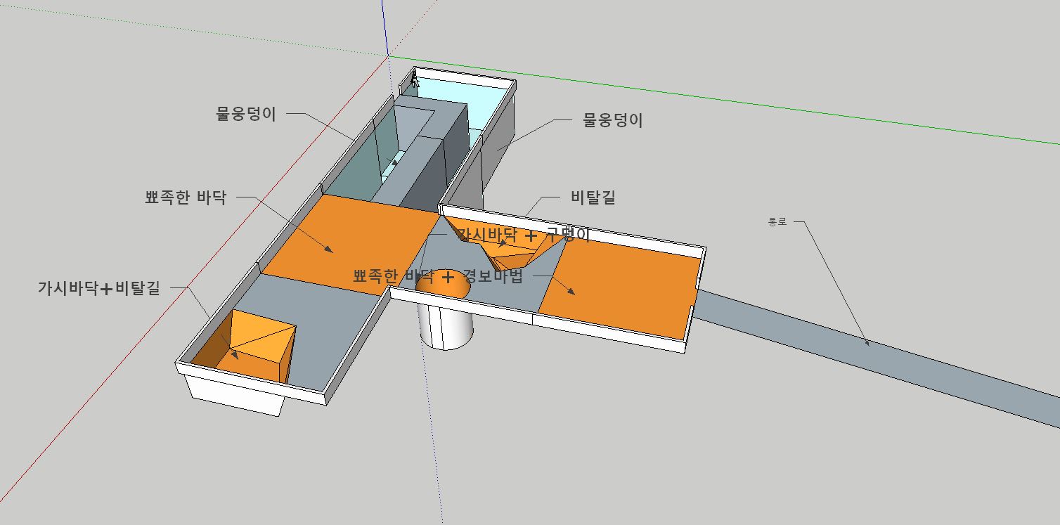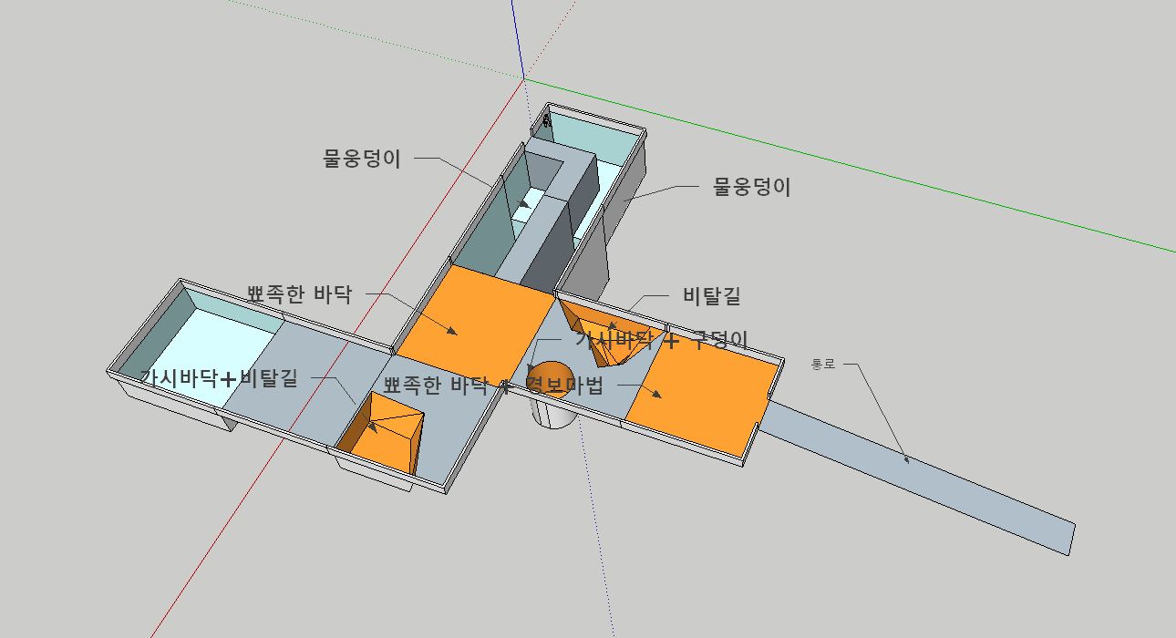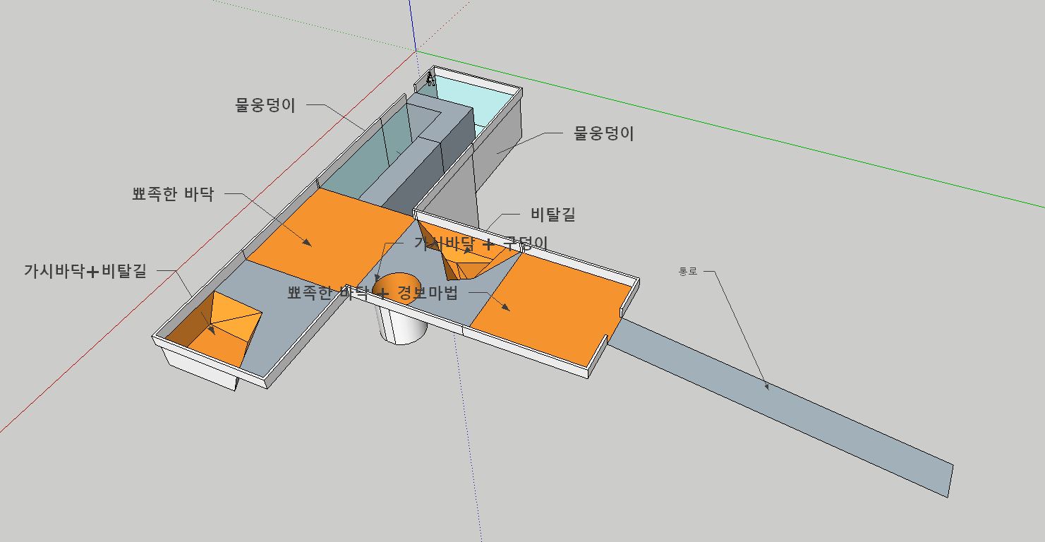 비탈진 길 + 뾰족한 바닥