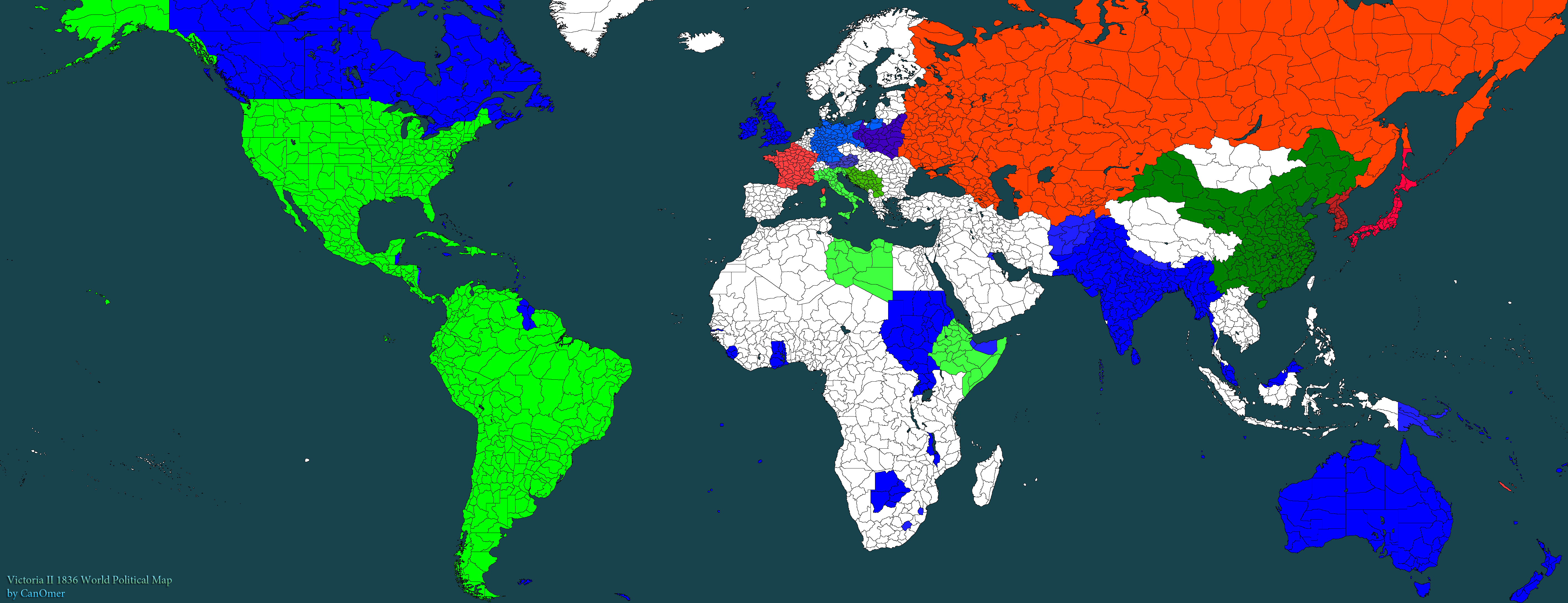 ※현 시점(?년, 1턴)에서 존재가 공인된 국가: RoA, 영국, 영국의 보호국들, 러시아, 독일, 일본, 프랑스, 이탈리아, 중국, 한국, 오스트리아, 폴란드, 유고슬라비아